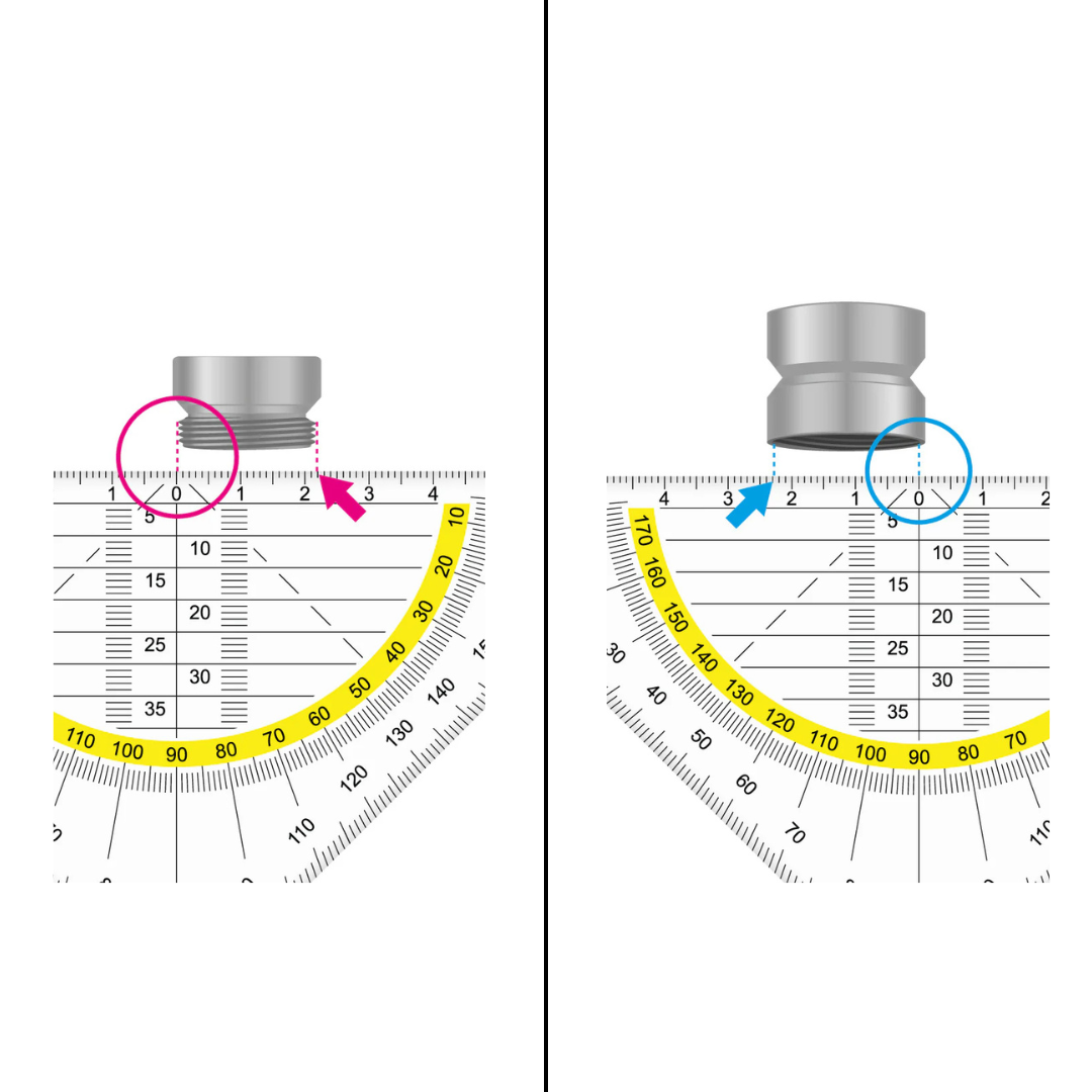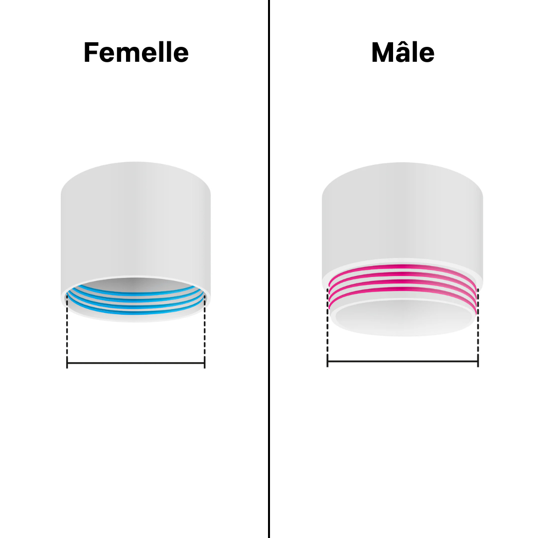 - Mâle : La mesure doit être faite sur les bords extérieurs de votre aérateur