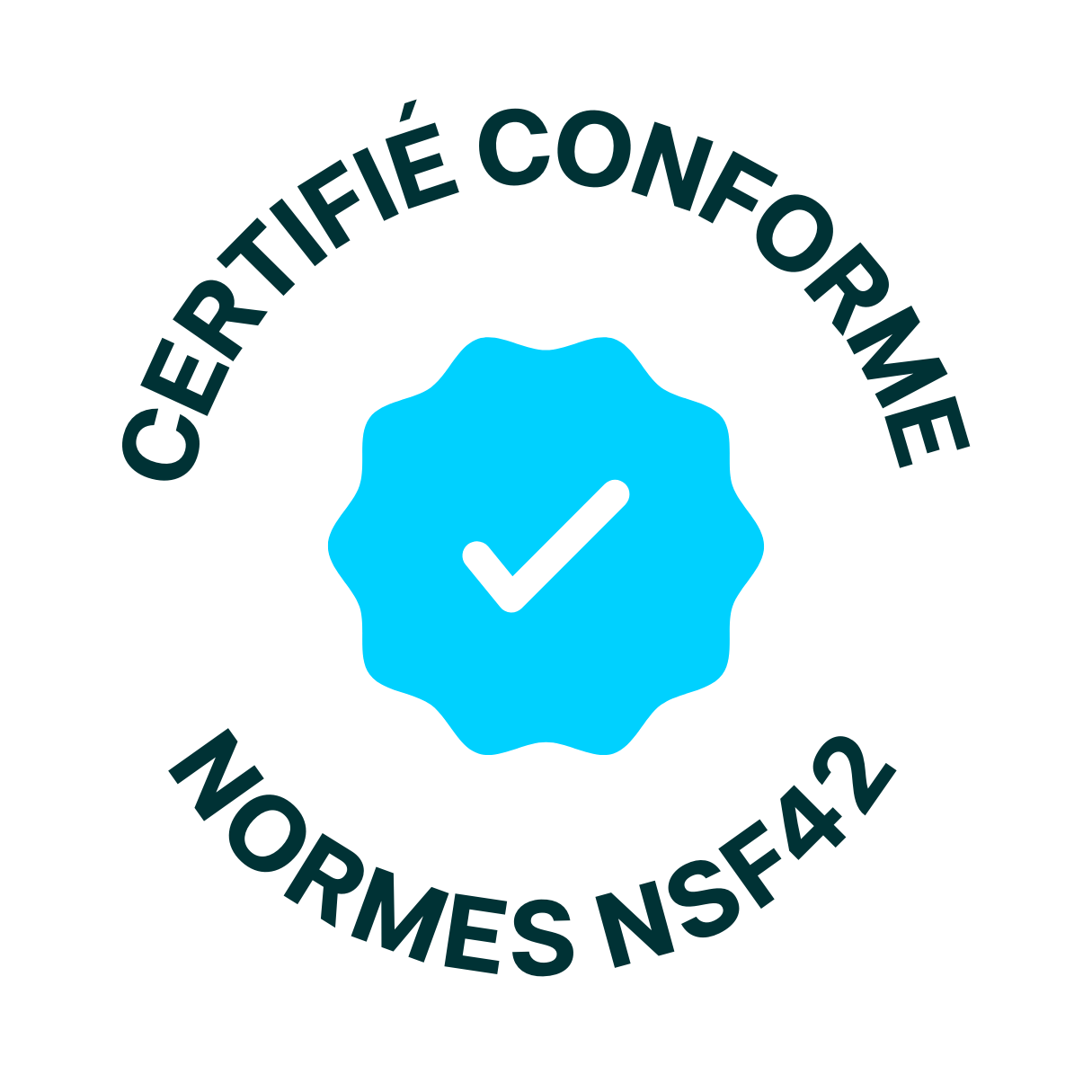 Pureva est conforme aux normes NSF-42, reconnues à l'international pour garantir la qualité et la sécurité de l'eau potable. Cette certification atteste de la capacité de notre système à :